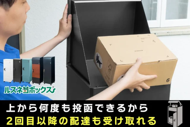 - 横殴りの雨や台風に備えた「専用防水カバー」や、雨に濡らさず複数回受け取れる機能がある