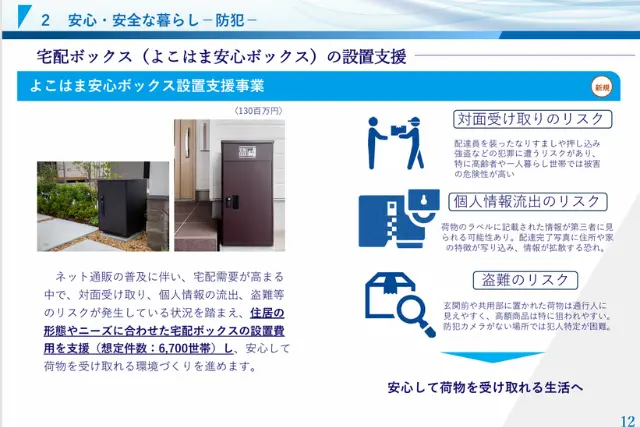 • 国の「みらいエコ住宅2026事業」等は、宅配ボックス単体での設置は補助対象外となることが多い