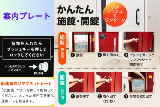 • 補足シール:「荷物を入れたらボタンを押し込んでください」等の自作指示を添える