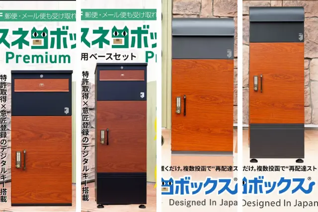 ルスネコボックス プレミアムには、「郵便ポストの機能が必要か」「設置場所に高さを出す専用ベースが必要か」によって、合計4つの商品ラインナップが存在します。